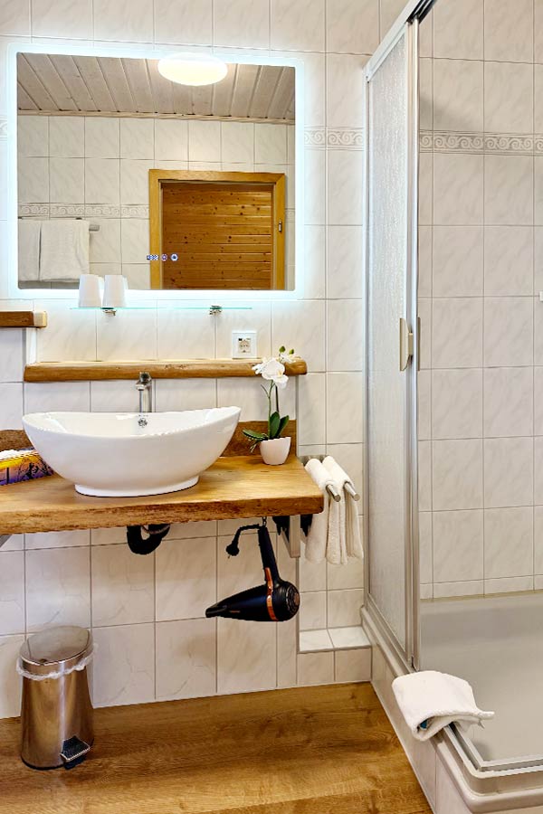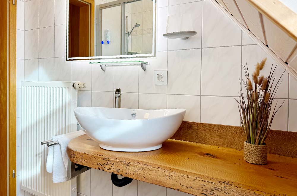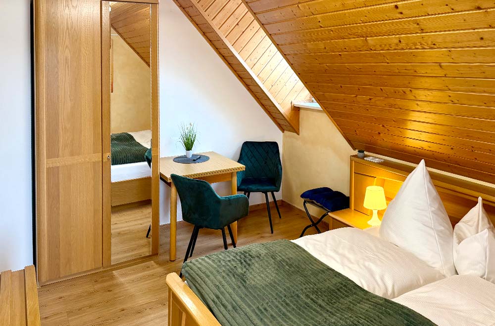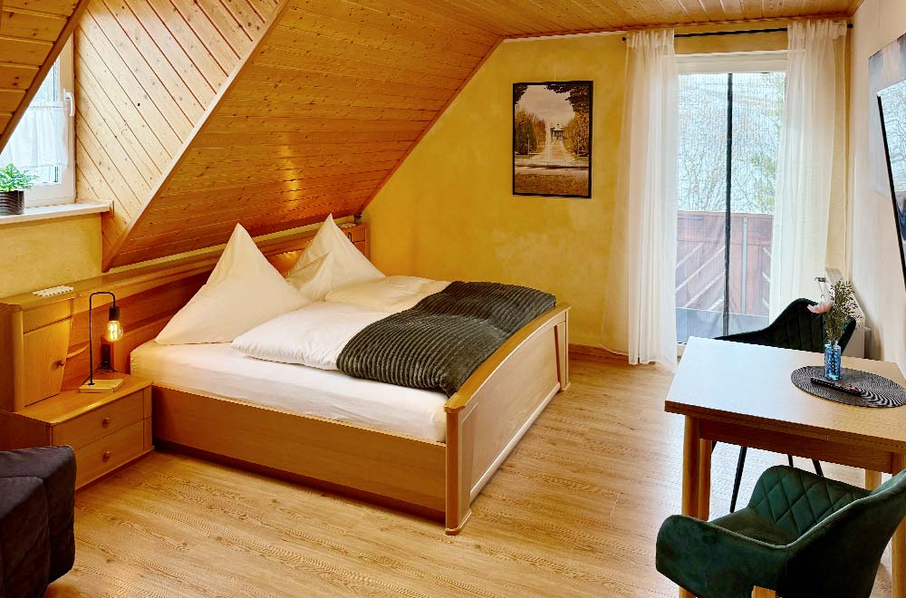 Unsere Comfort-Zimmer verbinden behaglichen Komfort mit einer besonders ruhigen Lage. Auf ca. 25 m² genießen Sie eine freundliche Atmosphäre, einen bestuhlten Balkon und einen schönen Blick ins Grüne zur Garten- und Bachseite. Die gemütliche Sitzgelegenheit lädt zum Verweilen ein, während unser reichhaltiges, regionales Frühstück jeden Morgen genussvoll beginnen lässt.