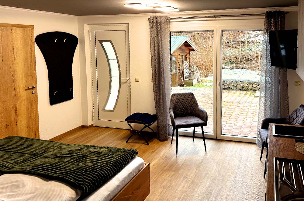 Mitten im Garten gelegen, bietet unser Garten Chalet ein ganz besonderes Urlaubserlebnis. Das separate Voll-Holz-Chalet verbindet auf ca. 27 m² gemütlichen Wohnkomfort mit viel Privatsphäre. Ein kleines Wohnzimmer, eine private Terrasse und die ruhige Lage machen es zum idealen Rückzugsort für alle, die Natur, Ruhe und eine besondere Atmosphäre schätzen.